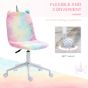 Fluffy Unicorn Office Chair with Mid-Back and Swivel Wheel, Cute Desk Chair, Rainbow Multi-Colored