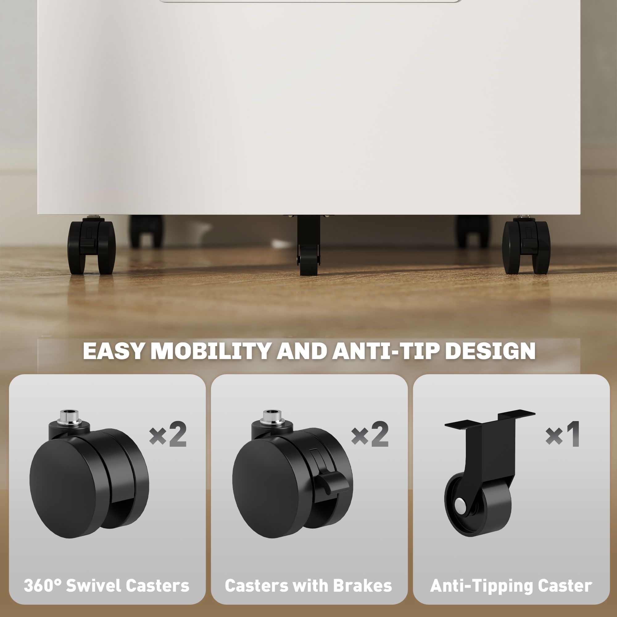 VONSETTA 3 Drawer Metal Filing Cabinet with Wheels & Lock, Under Desk Storage for A4, White