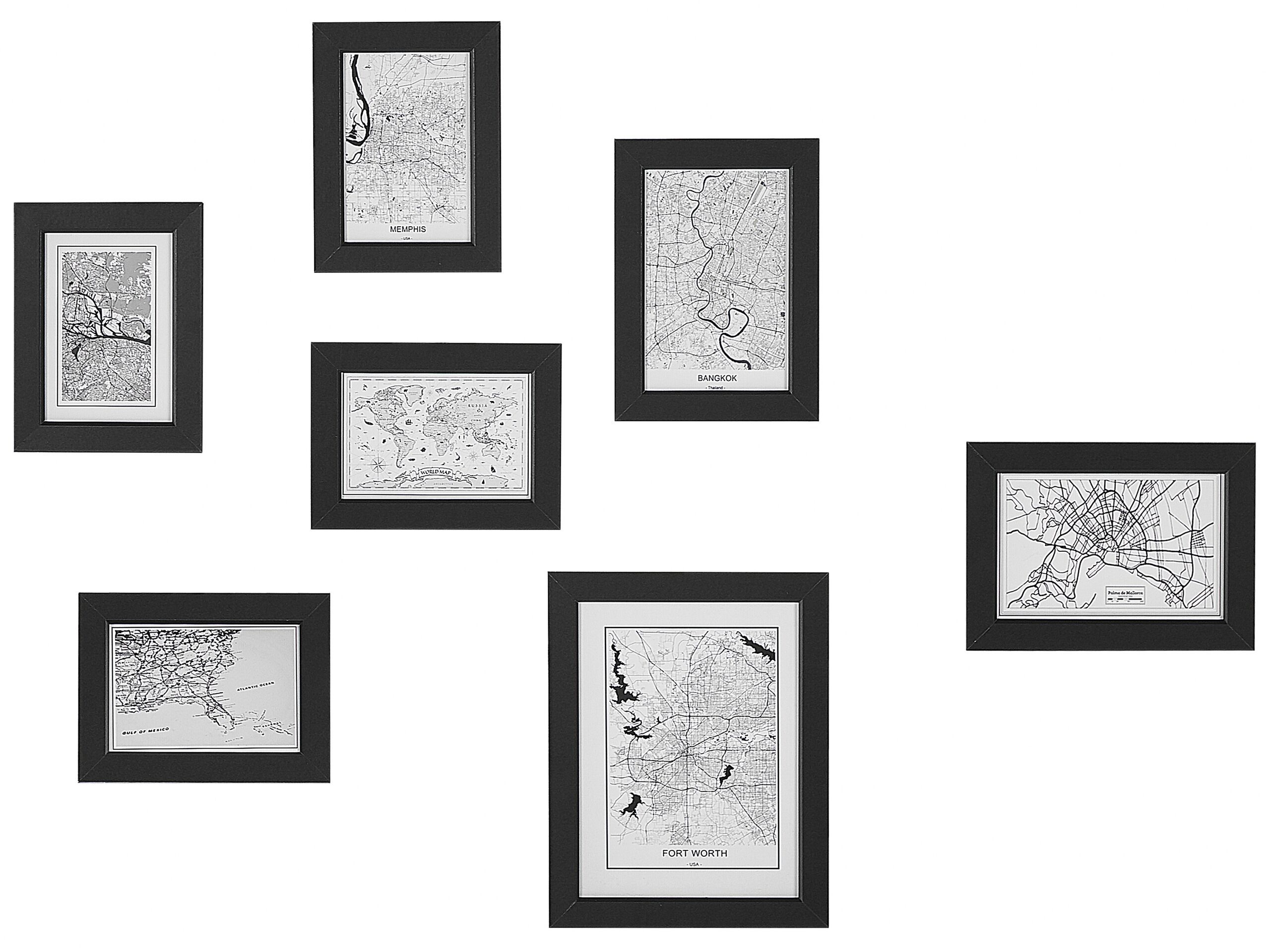 Wall Gallery of Maps 7 Frames Black DENKORO
