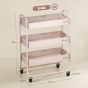 WALVORN 3-Tier Storage Trolley on Wheels with Rolling Utility Cart and Mesh Backets - Pink