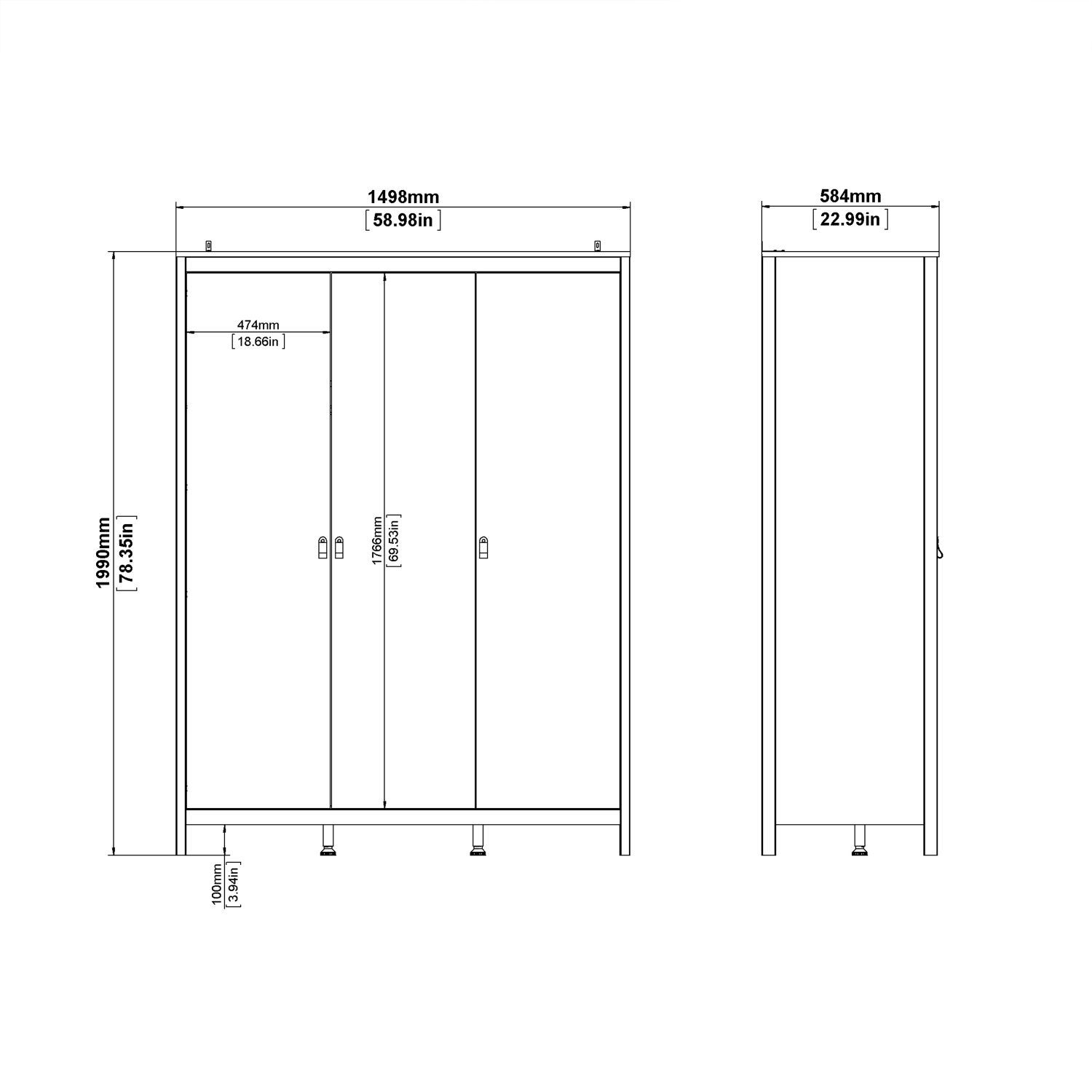 Wardrobe - BURNLEY 3 Door Wardrobe Matt Black 149.8cm