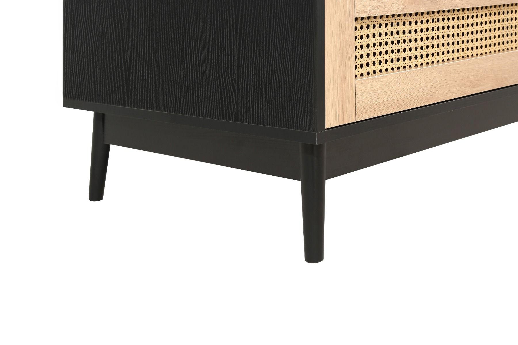 Wardrobe - CARDANO 2 Door 1 Drawer Rattan Wardrobe Black 90cm