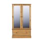 Wardrobe - CLARA 2 Door Mirrored Wardrobe Antique Waxed 100cm