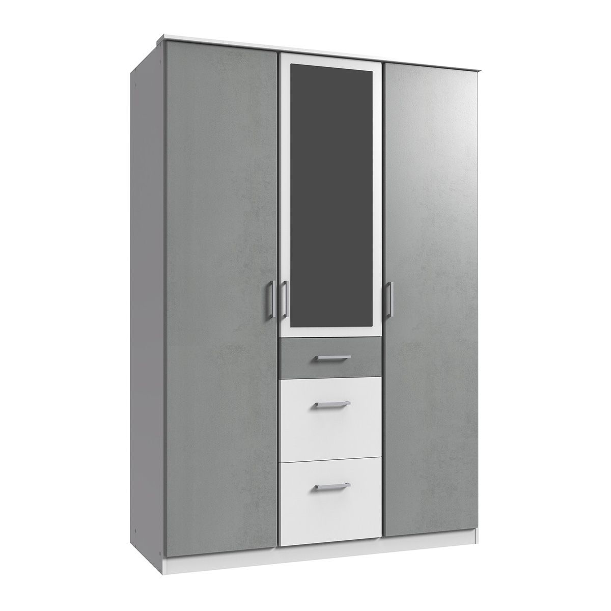 Wardrobe - COMODO 3 Door Wardrobe White and Grey 135cm