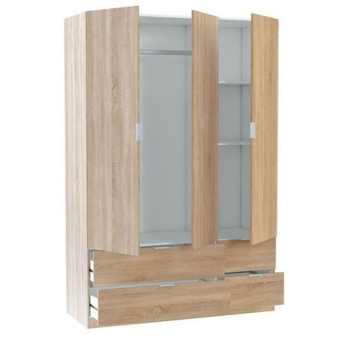 Wardrobe - HARVEY 3 Door 4 Drawer Wardrobe Oak Effect 135cm