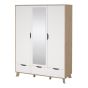 Wardrobe - IKRON 3 Doors and 2 Drawers Mirrored Wardrobe Jackson Hickory and White 147cm