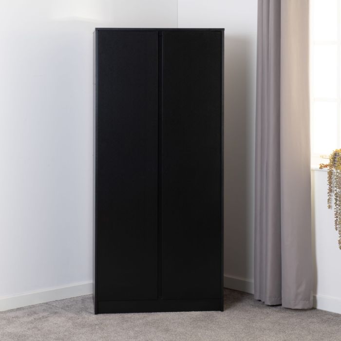 Wardrobe - MALDEN 2 Door Wardrobe Black 80cm
