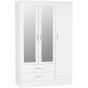 Wardrobe - NEWBIGGIN 3 Door Mirrored Wardrobe White Gloss 116cm