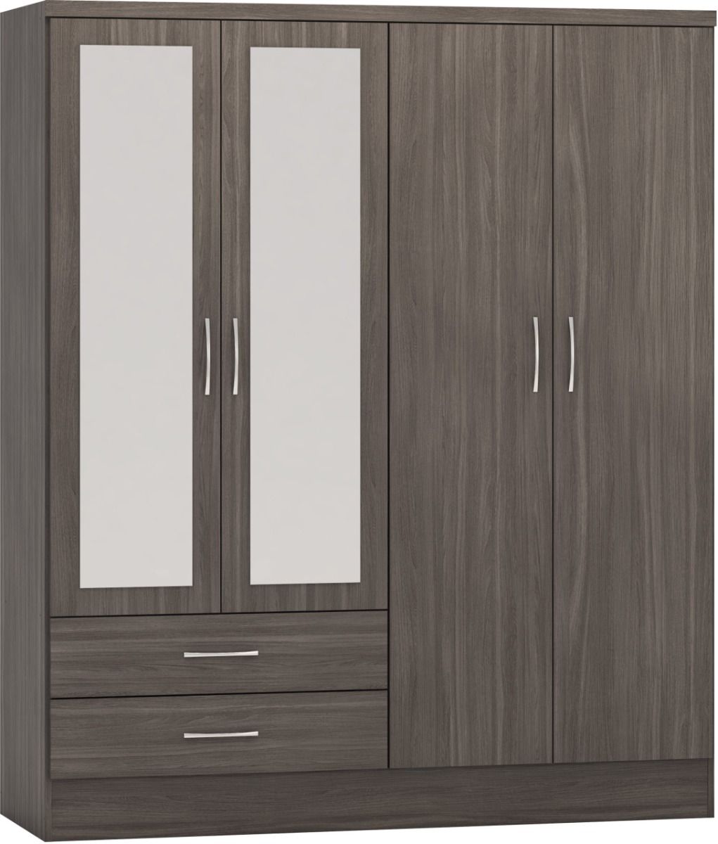Wardrobe - NEWBIGGIN 4 Door Mirrored Wardrobe Black Wood Grain 154cm