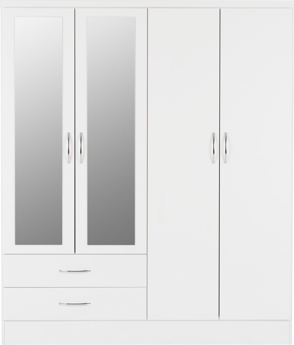 Wardrobe - NEWBIGGIN 4 Door Mirrored Wardrobe White Gloss 154cm
