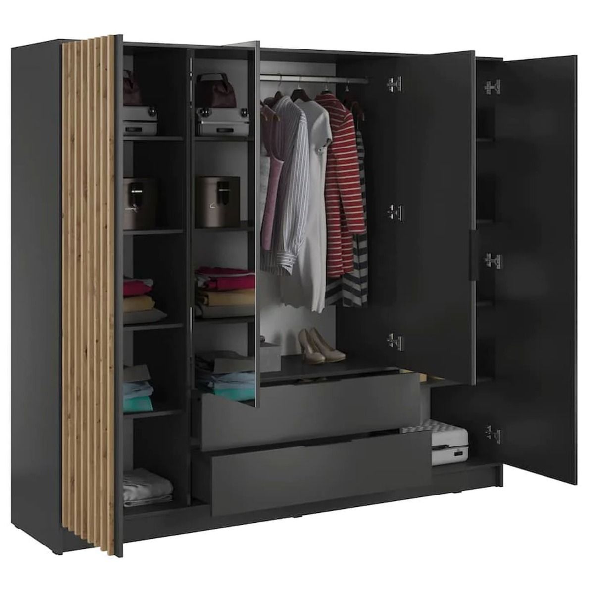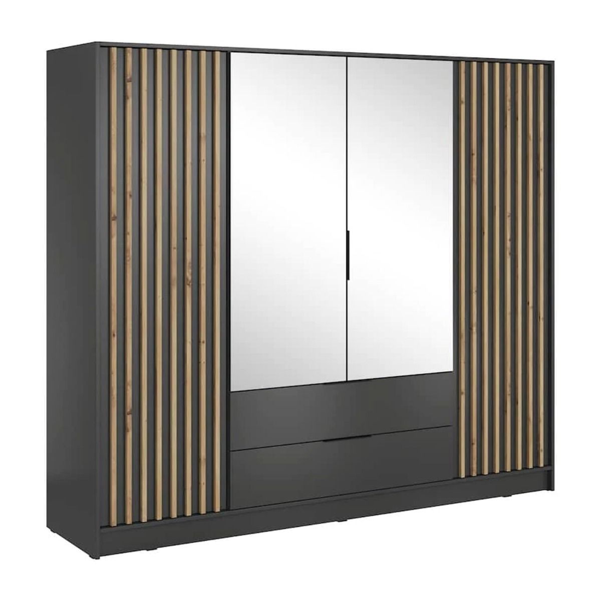 Wardrobe - ORION 4 Door Mirrored Wardrobe Graphite 206cm