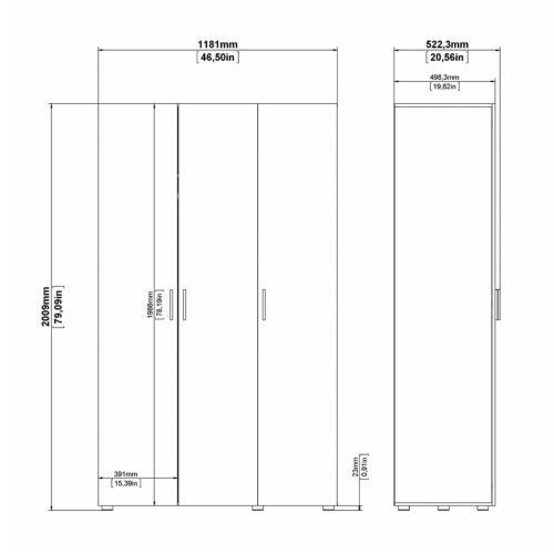 Wardrobe - PEMBROKE 3 Door Wardrobe Black 118.1cm