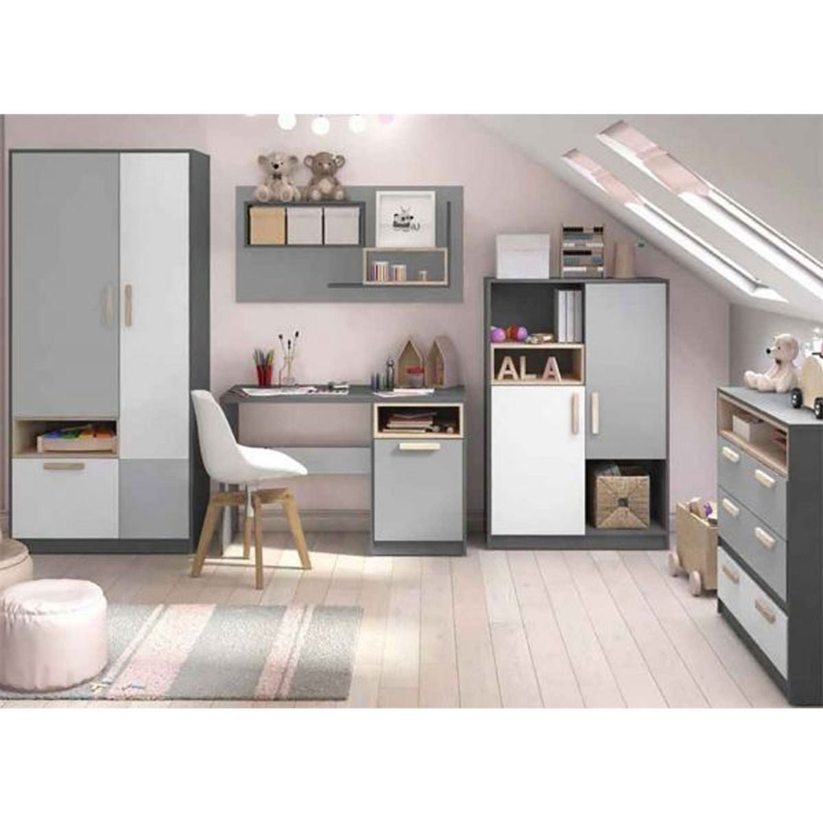 Wardrobe - PEORIA 2 Door Left Side Mirrored Wardrobe Grey and White Matt 130cm