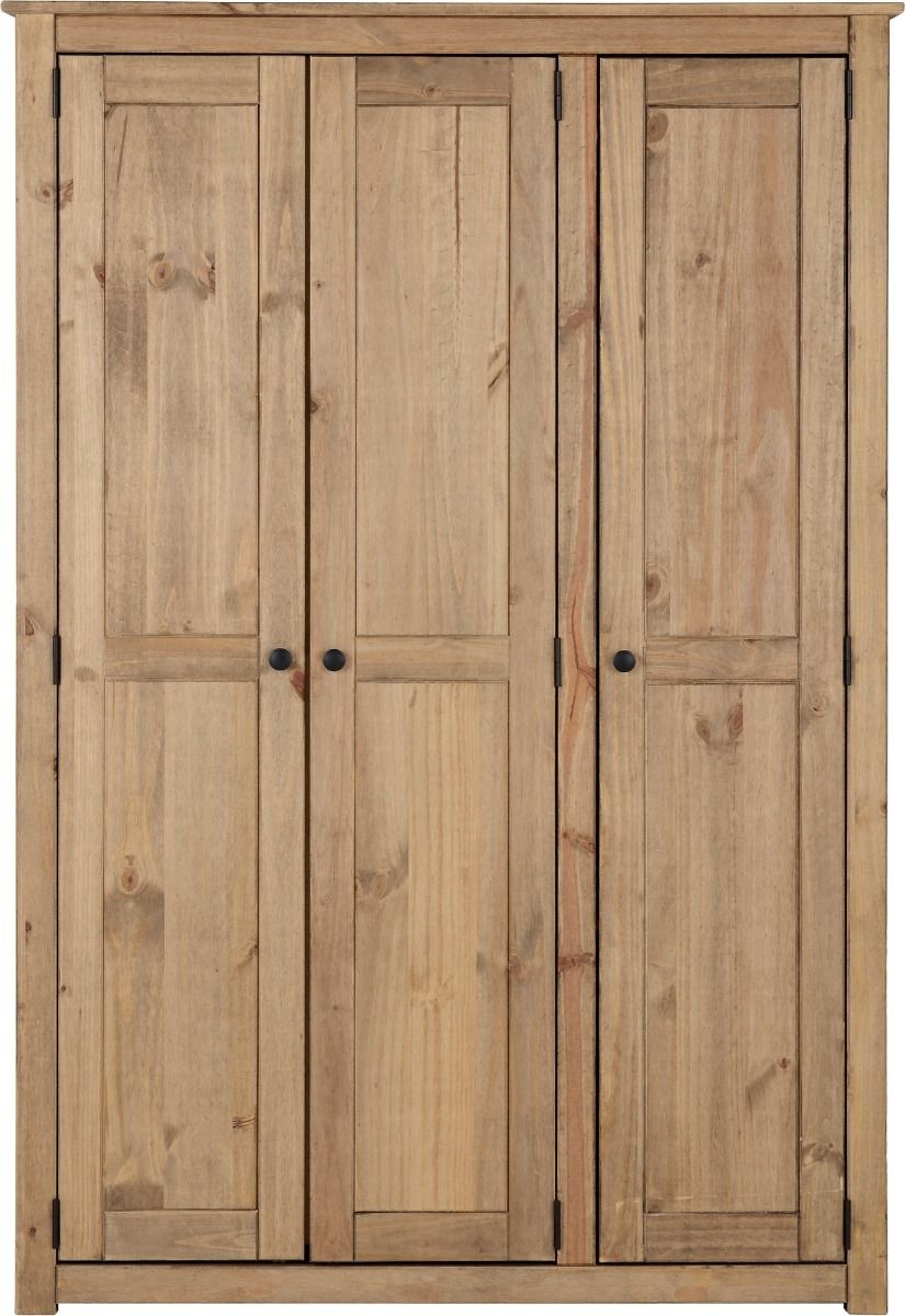 Wardrobe - PRESTON 3 Door Wardrobe Natural Wax 118cm