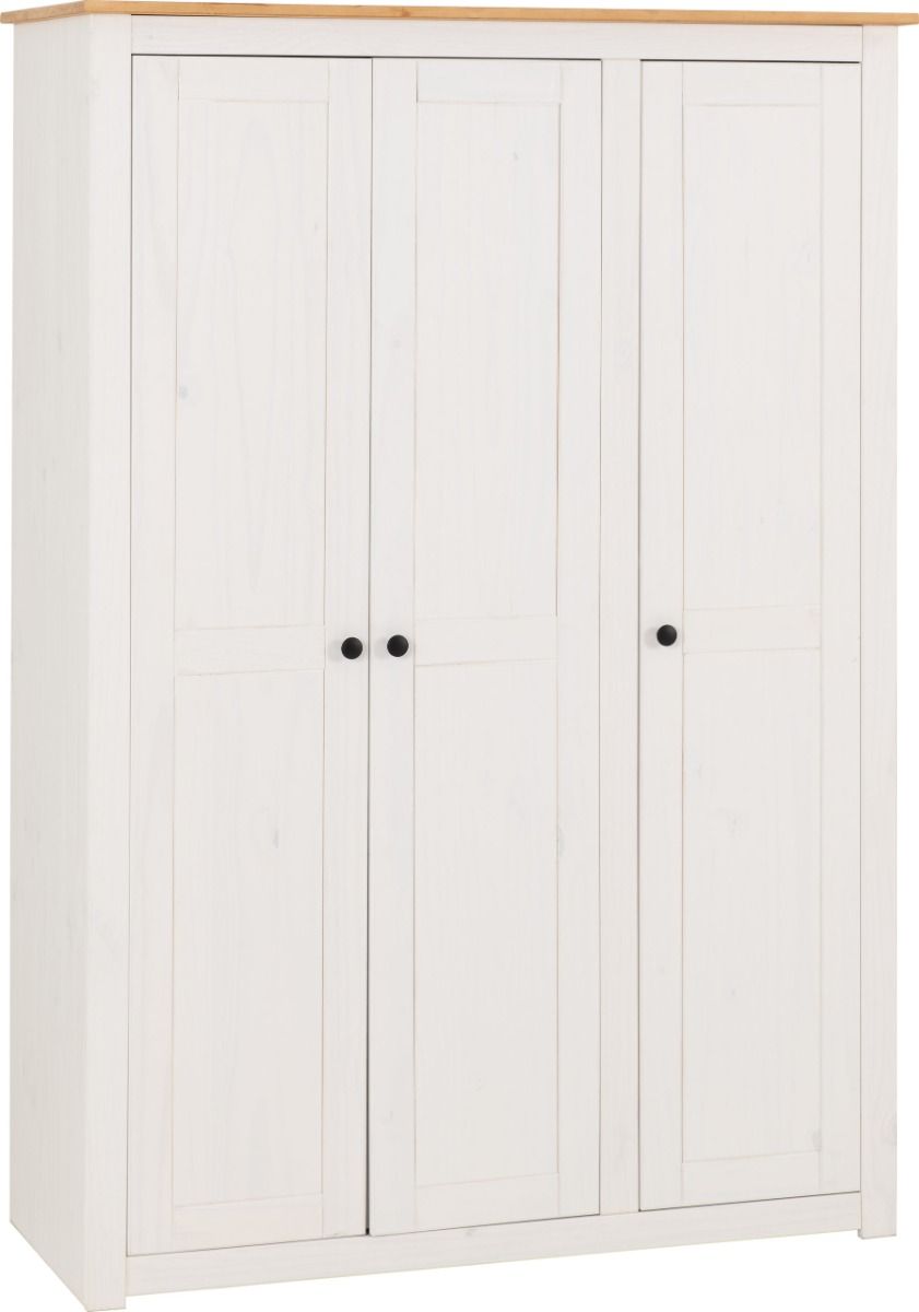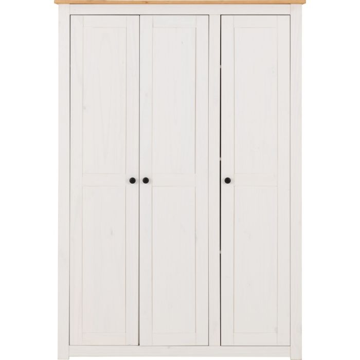 Wardrobe - PRESTON 3 Door Wardrobe White Natural Wax 118cm