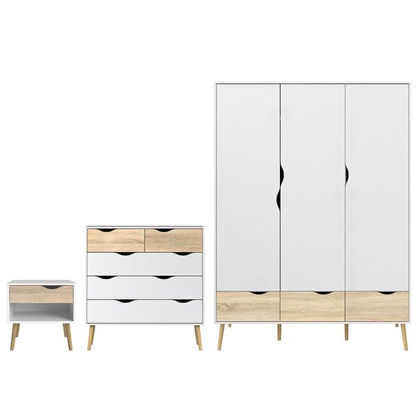 Wardrobe Set - OSSETT 3 Door Bedroom Set 3 Piece White and Oak 147cm