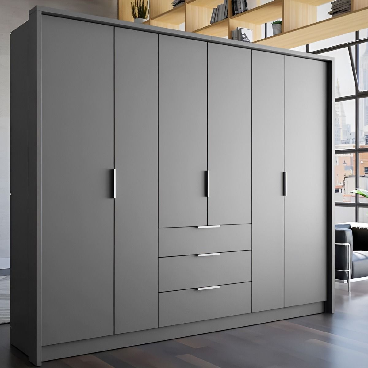 Wardrobe - STAFFORD 6 Door Wardrobe Graphite 255cm