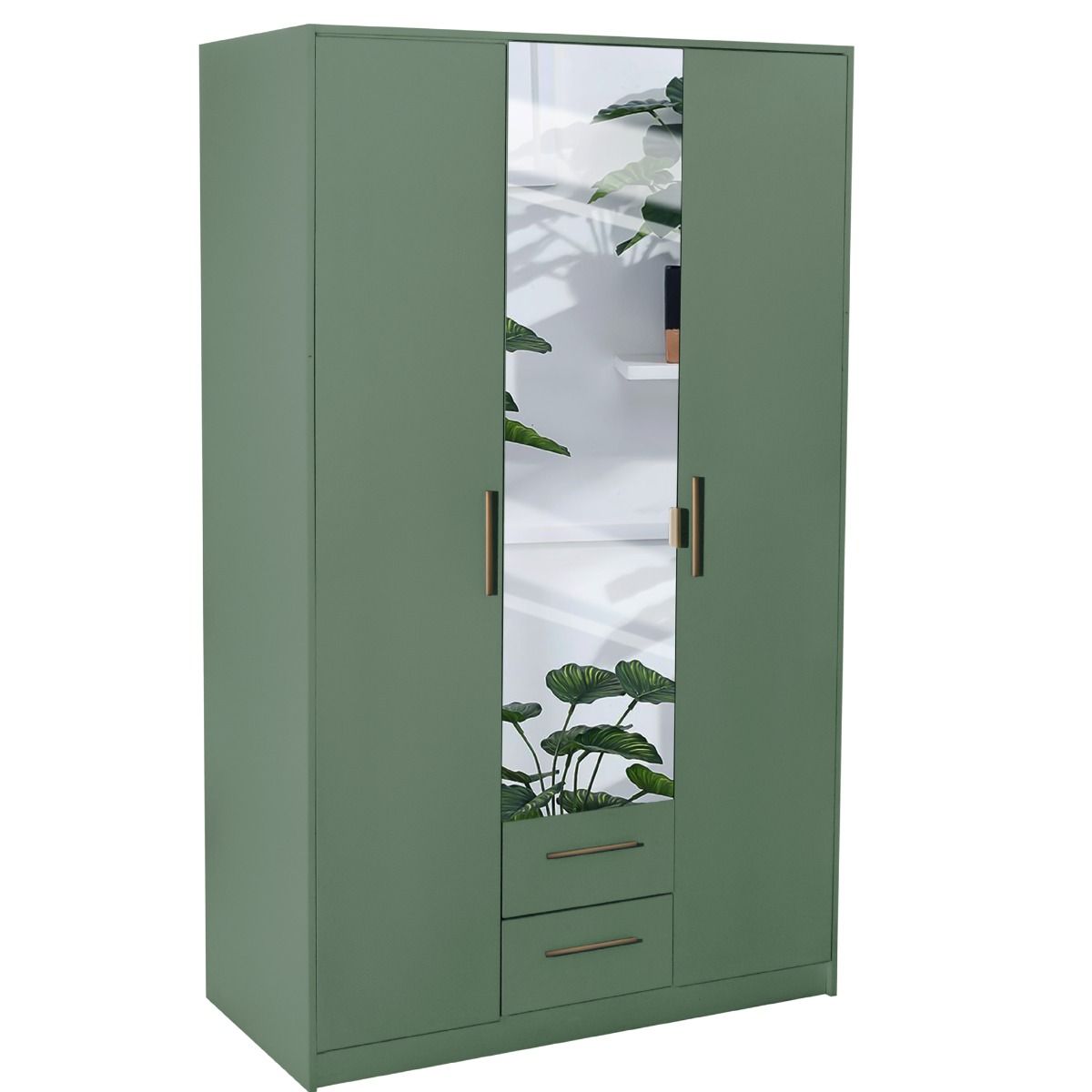 Wardrobe - WINSTEAD 3 Door Mirrored Wardrobe Dark Green 135cm