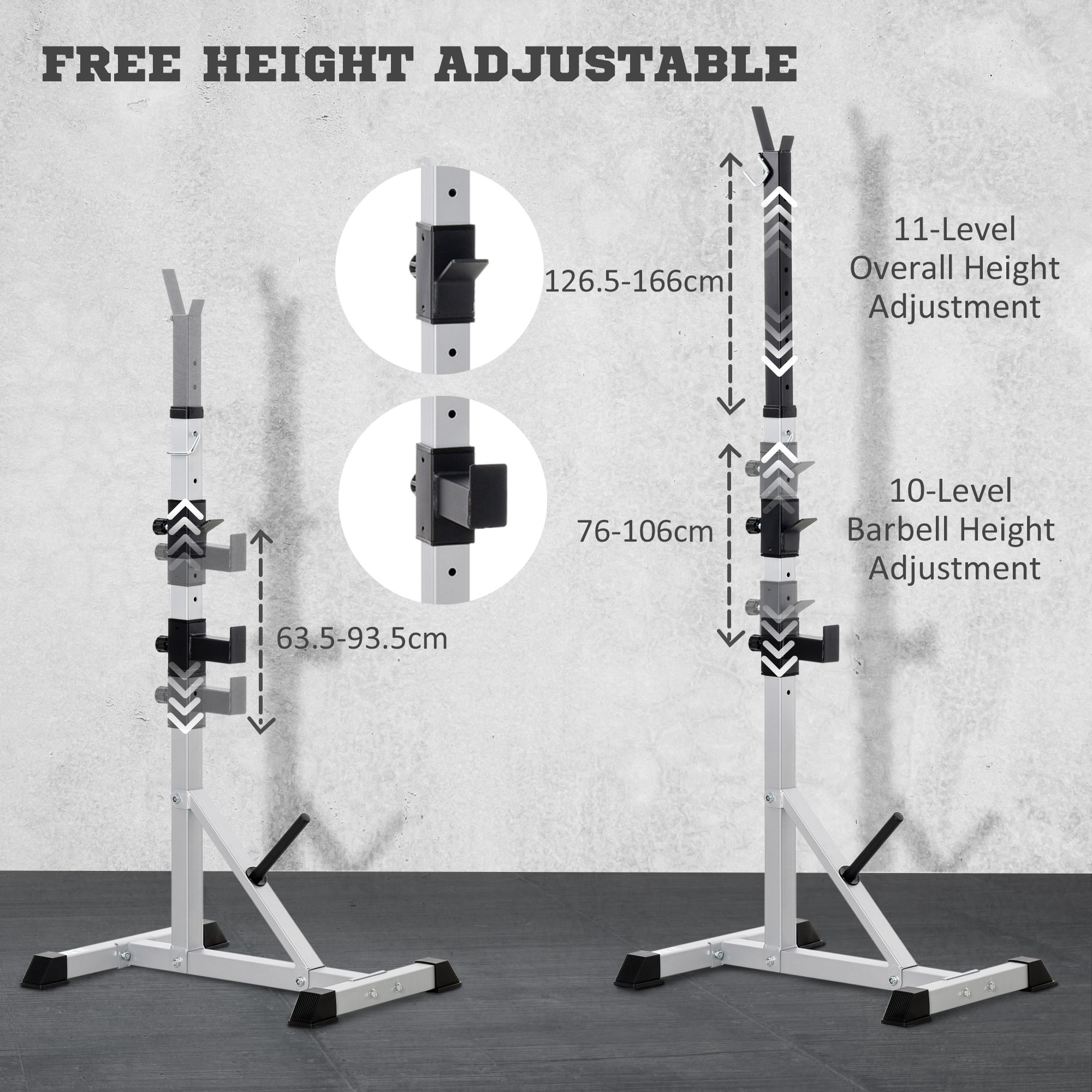 - SET OF TWO: Brings the squat rack to the comfort of your own home, allowing you work on your legs, arms waist through squats, presses, lunges and everything else you love to do.
