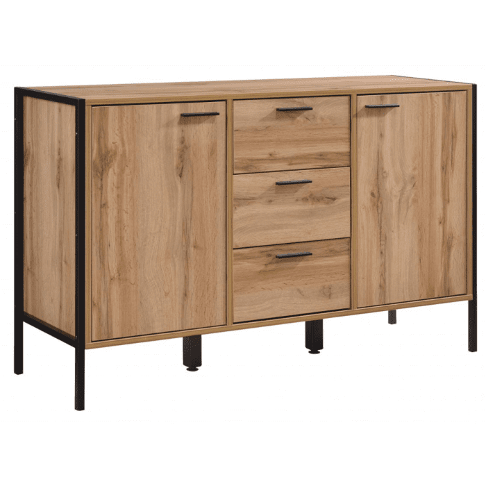 Wenatchee 2-Door 3-Drawer Sideboard: Oak Effect, Black Metal Frame - Contemporary Storage Solution