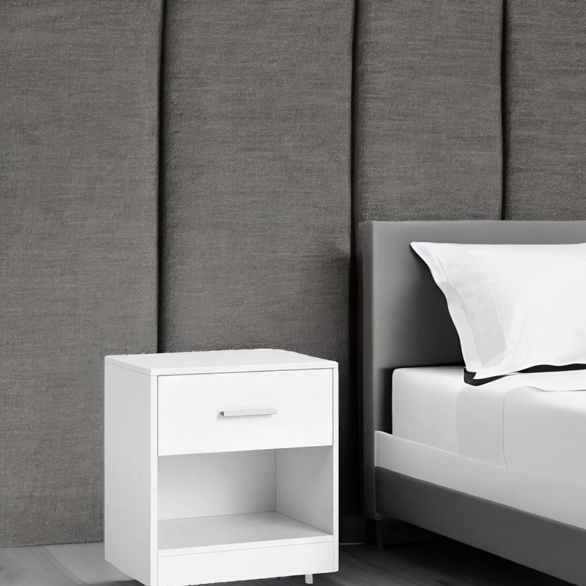 WESTORA Bedside Tables Set of 2 Modern Tables with Drawer for Bedroom or Living Room - White