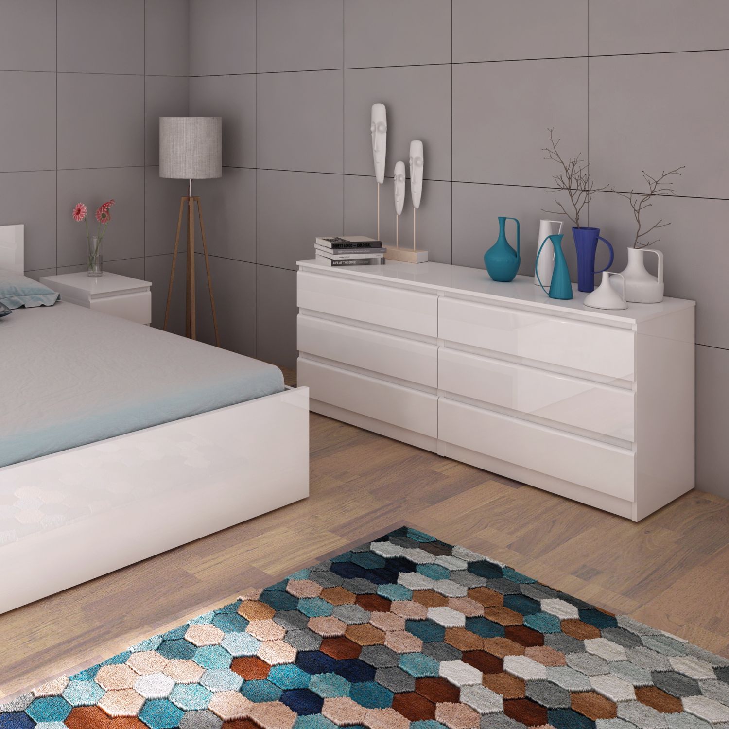 NANAIMO White Chest of Drawers - Extra Large-sized, 6 Drawers