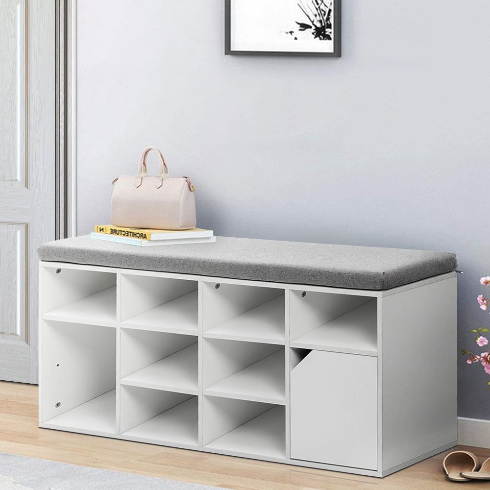 White Padded Shoe Storage Bench