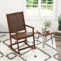 Wood Rocking Chair with PU Seat and Rubber Wood Frame for Porch Backyard Balcony-Brown