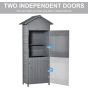 Wooden Garden Storage Shed Timber Tool Cabinet Organiser w/ Tilted-felt Roof, Shelves, Lockable Doors, 189 x 82 x 49 cm, Grey