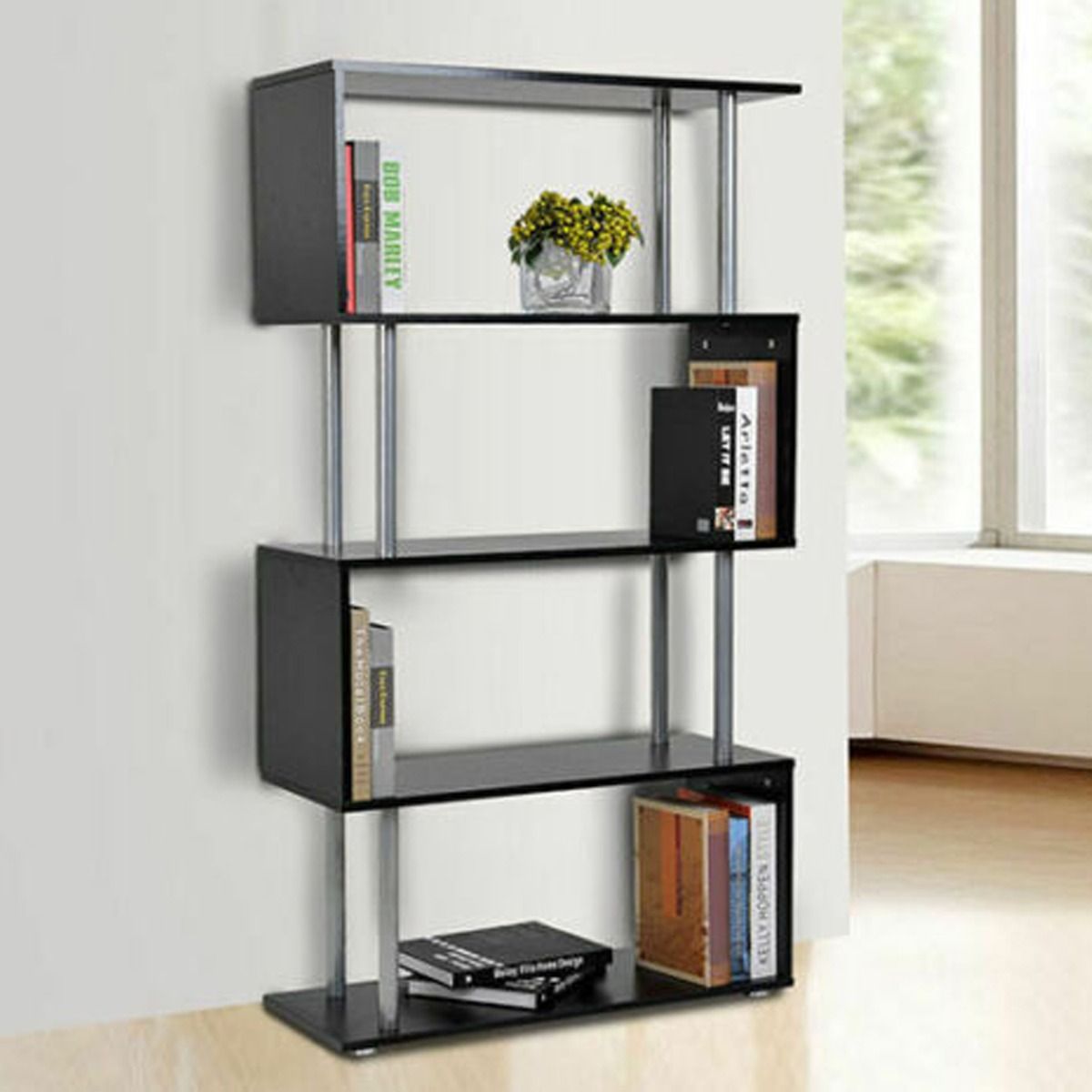 Wooden S Shape Bookcase - Black