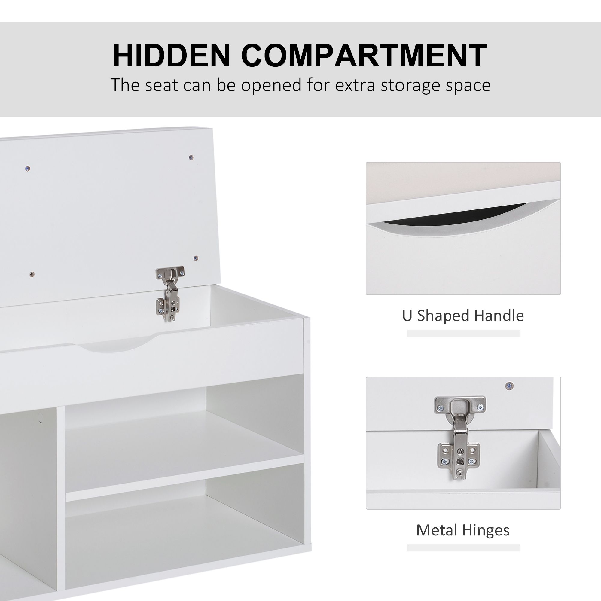 Wooden Shoes Rack Bench, Hidden Storage Padded Seat, Organiser Footwear Rack, Hallway, White, 80 x 30 x 47 cm