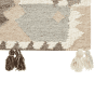 Introduce a boho vibe to your living space with this rectangular, handmade kilim rug. The piece was crafted out of wool and cotton, which makes it especially durable, while also remaining soft and pleasant to touch. Its surface is covered with patches of brown, beige and grey shades, so the rug can be matched with a variety of other decorations. Details: Color: Multicolour, Beige, Brown, Grey. Main material: Wool. Additional material: Cotton. Material Composition: 85% Wool, 15% Cotton Weight: 2 Assembly: Does Not Require Assembly