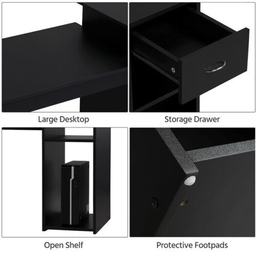 Writing and Computer Desk with Drawer and Shelves Study Table - Black
