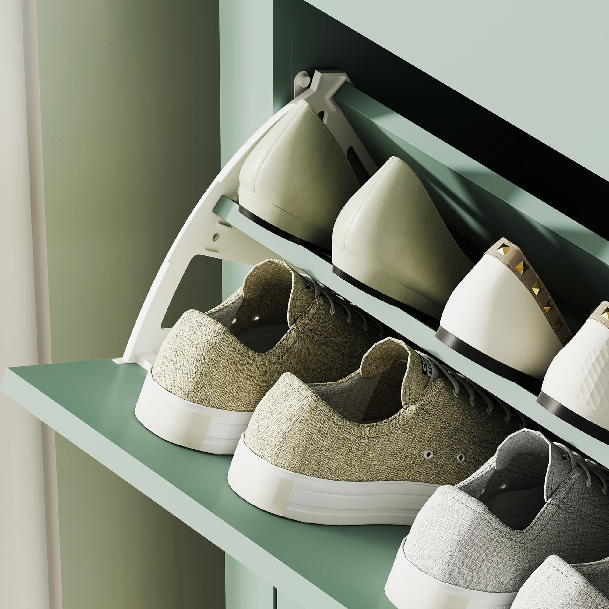 ZABIST 2 Drawers Medium Shoe Cabinet Green