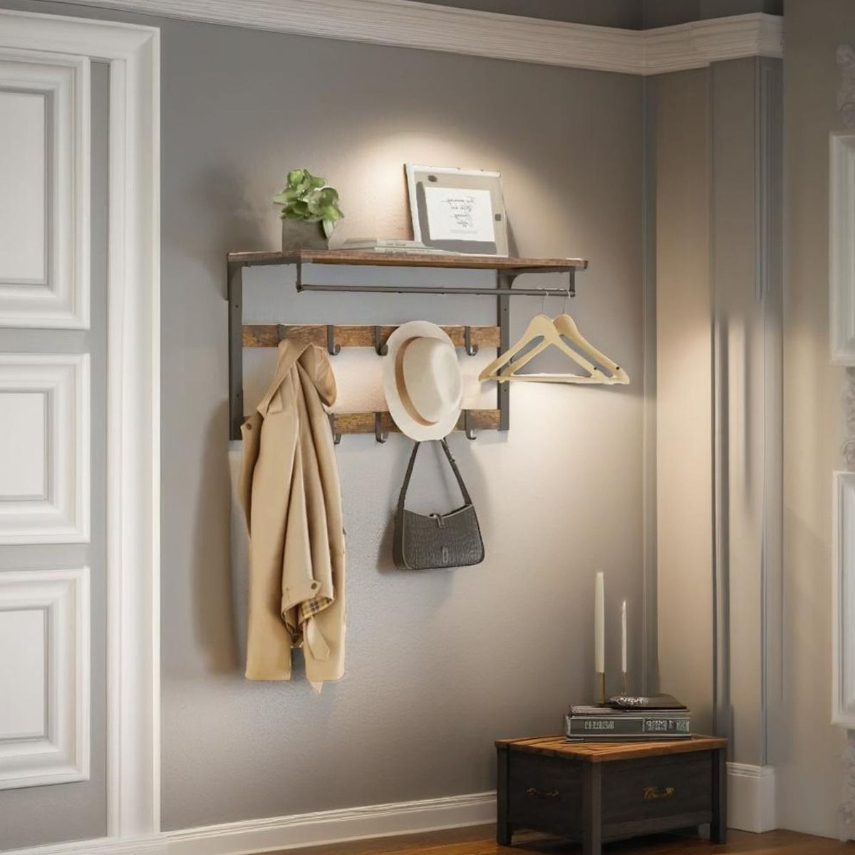 ZEPHRON Coat Rack Rustic Wall-Mounted Rack with 10 Removable Hooks - Brown